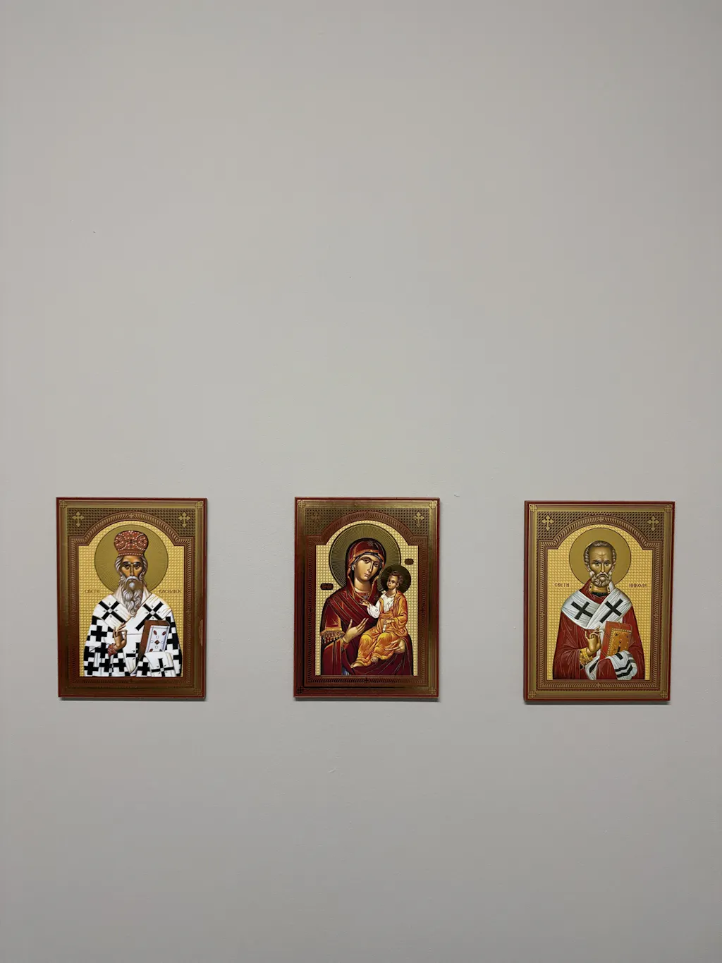 Gefertigt auf stabiler Medijapan-Platte und mit kaschierter Oberfläche samt feiner Goldprägung (Zlatotisak), vermittelt diese Ikone Würde und spirituelle Tiefe. Der Heilige ist in traditioneller Segenshaltung dargestellt – mit betonten Details wie dem goldenen Nimbus, bischöflicher Kleidung und dem Evangelienbuch in der Hand. Die reflexfreie Oberfläche sorgt für eine ruhige Betrachtung unter allen Lichtverhältnissen. Durch das mittlere Format eignet sich die Ikone hervorragend für Hausaltäre, Gebetsecken oder als geistliches Geschenk zu Slava, Taufe oder Genesung.